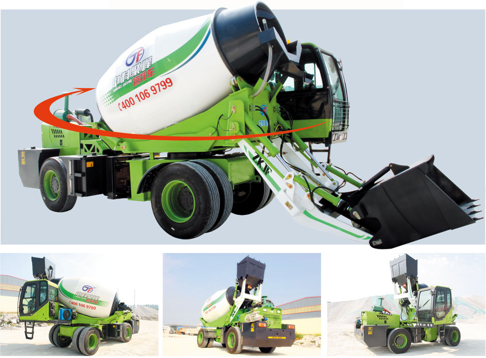 “重型”球形鞍座上安裝的反力架可以180°液壓旋轉,并且通過液壓式制動器自動鎖止。滾筒旋轉通過柱塞泵和閉路中的柱塞液壓馬達實現,在操作室內和攪拌機后部擁有手動電氣閥。